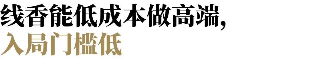 不过由于香粉中的昂贵成分对使用体验没有特别大的影响,这意味着线香可以用很低成本做高端。更何况,由于属于香氛大品类,线香还能通过讲故事做营销提高溢价,进一步拉高毛利。