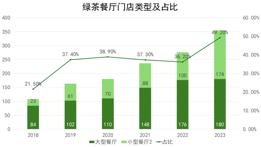 用餐面积小于450平方米的小型餐厅成为绿茶餐厅开店的主力,如今小型门店的占比接近50%。招股书显示,开设每家餐厅的资本开支和经营开支从平均320万-370万,调整为240万-370万。