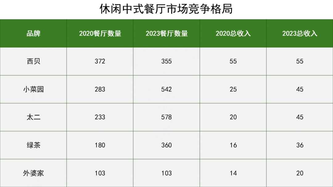 绿茶餐厅的市场地位依然稳固。根据卓识咨询报告,以2023年收入计,绿茶餐厅在中国中式休闲餐饮市场排名第四。前三名为西贝、小菜园和太二。