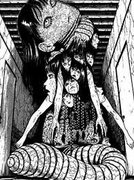 但恐怖漫画界的一代宗师,还要数日本著名恐怖漫画家伊藤润二。原本是一名齿模师的他,抱着对漫画的热爱在工作之余开始创作漫画。他的第一部作品《富江》也是一位十分美丽的女生。富江四处勾引男同学与男老师,并引诱他们将自己杀害肢解。但富江的尸体在肢解之后却又可以自体繁殖出多个富江,对周遭人的展开复仇的行动。《富江》在上个世纪八十年代末成为经典之后,伊藤润二便辞去了齿模师的工作开始专心从事漫画的创作,陆续创作了《人头气球》、《墓碑镇》以及《至死不渝的爱》等脍炙人口的漫画作品,部分作品还先后多次被翻拍成电影。