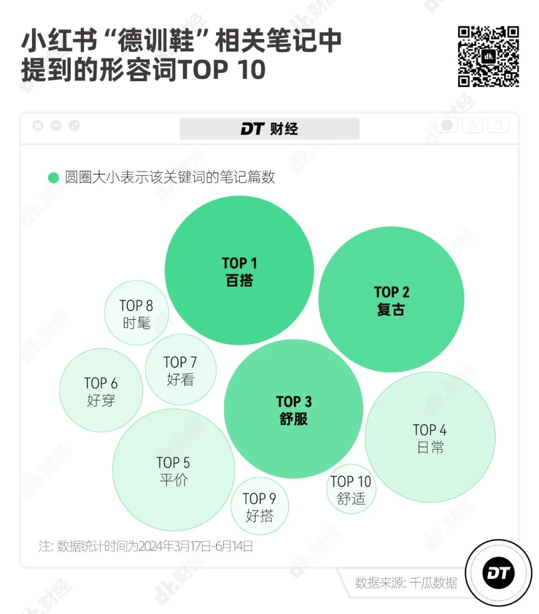根据小红书“德训鞋”相关笔记的高频词,《DT商业观察》总结出年轻人喜欢德训鞋的三点理由。