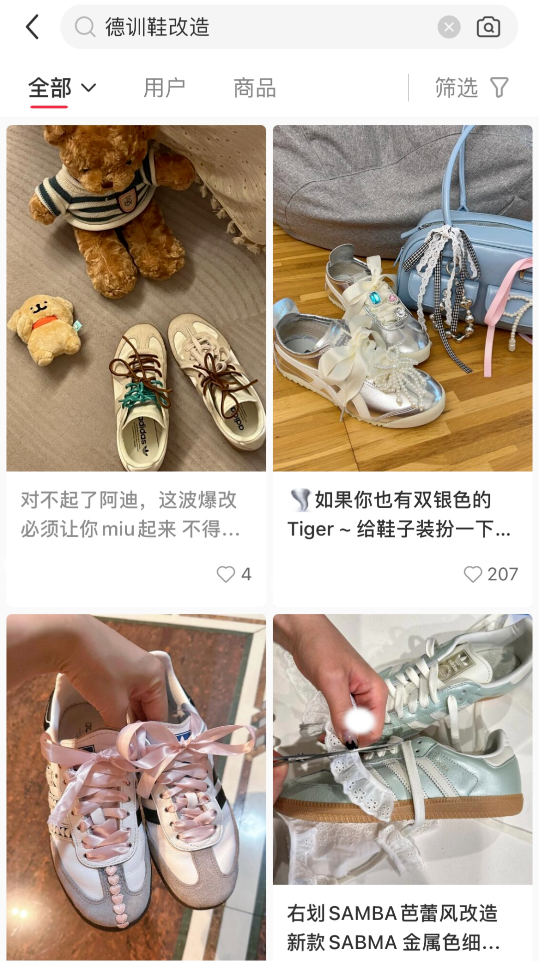 对DIY玩家来说,德训鞋也有很大空间去发挥创意,可以用蕾丝花边、彩色丝带、珍珠领结等元素,给鞋子进行精装修,remake独一无二的德训鞋。