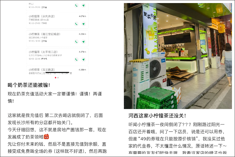 6月初,长沙茶饮品牌,小柠撞茶一夜间人去店散,创始人不见踪影,一百多家门店突发闭店。这是继遇见小黄鸭被立案后的又一个“众筹门店”跑路案例。