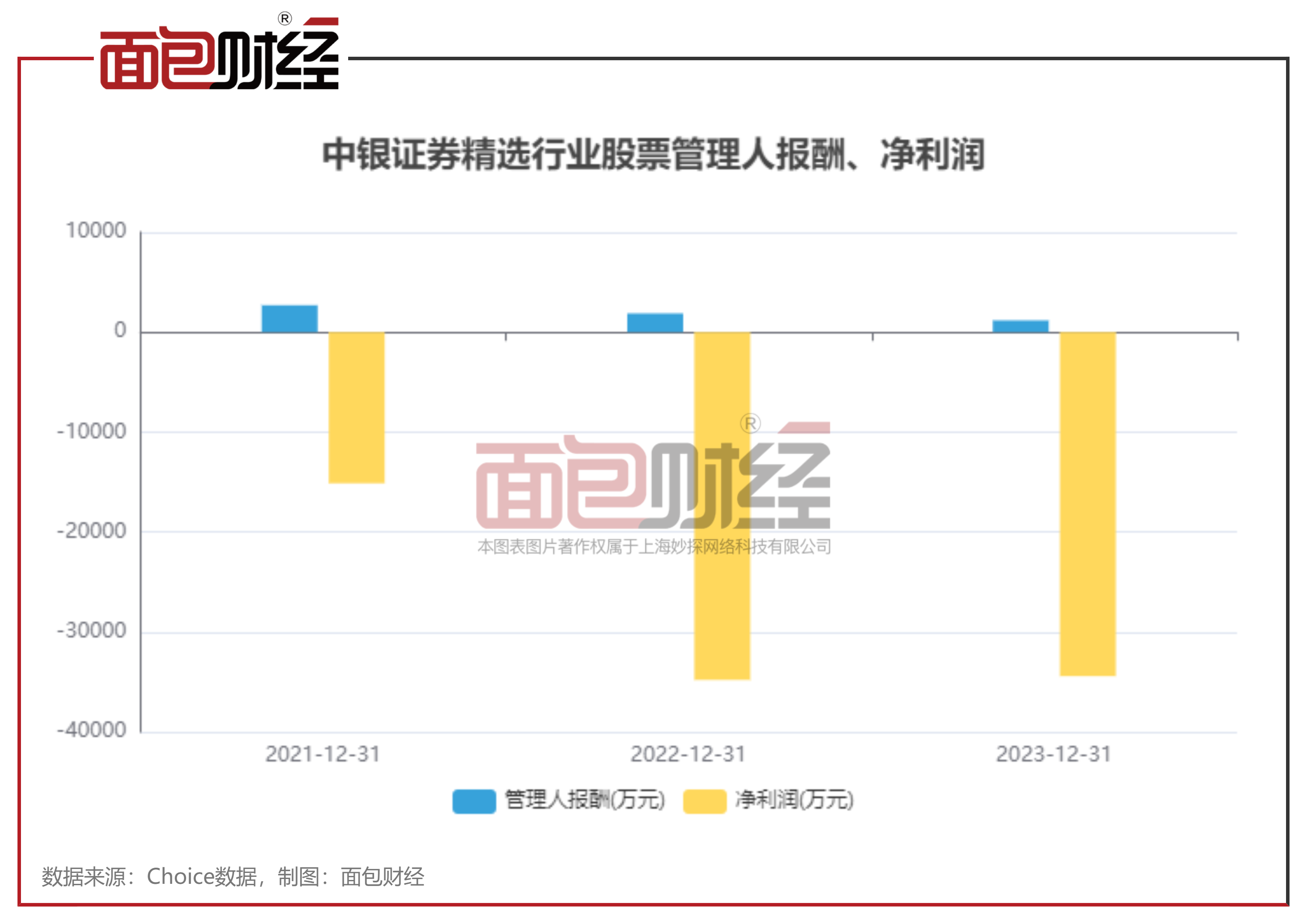 Choice数据显示,截至2023年末,中银证券精选行业股票累计亏损超8.43亿元,收取管理费超5700万元。2024年一季度,该基金亏损增加超7500万元。