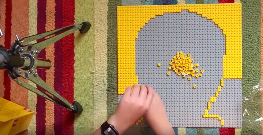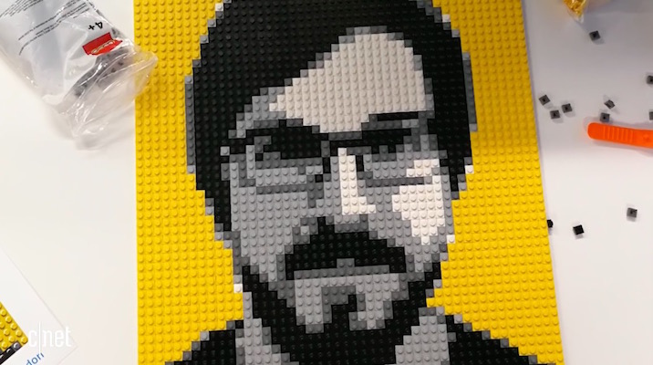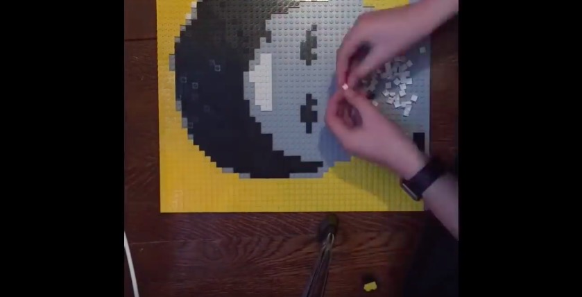 一张完全按照你肖像制成的马赛克照片,就成了这4502片积木的拼接指南——零件由黄、灰、黑、白四种基础色组成,你需要先用灰色打底,再用其他颜色把轮廓和细节一点一点勾勒出来。