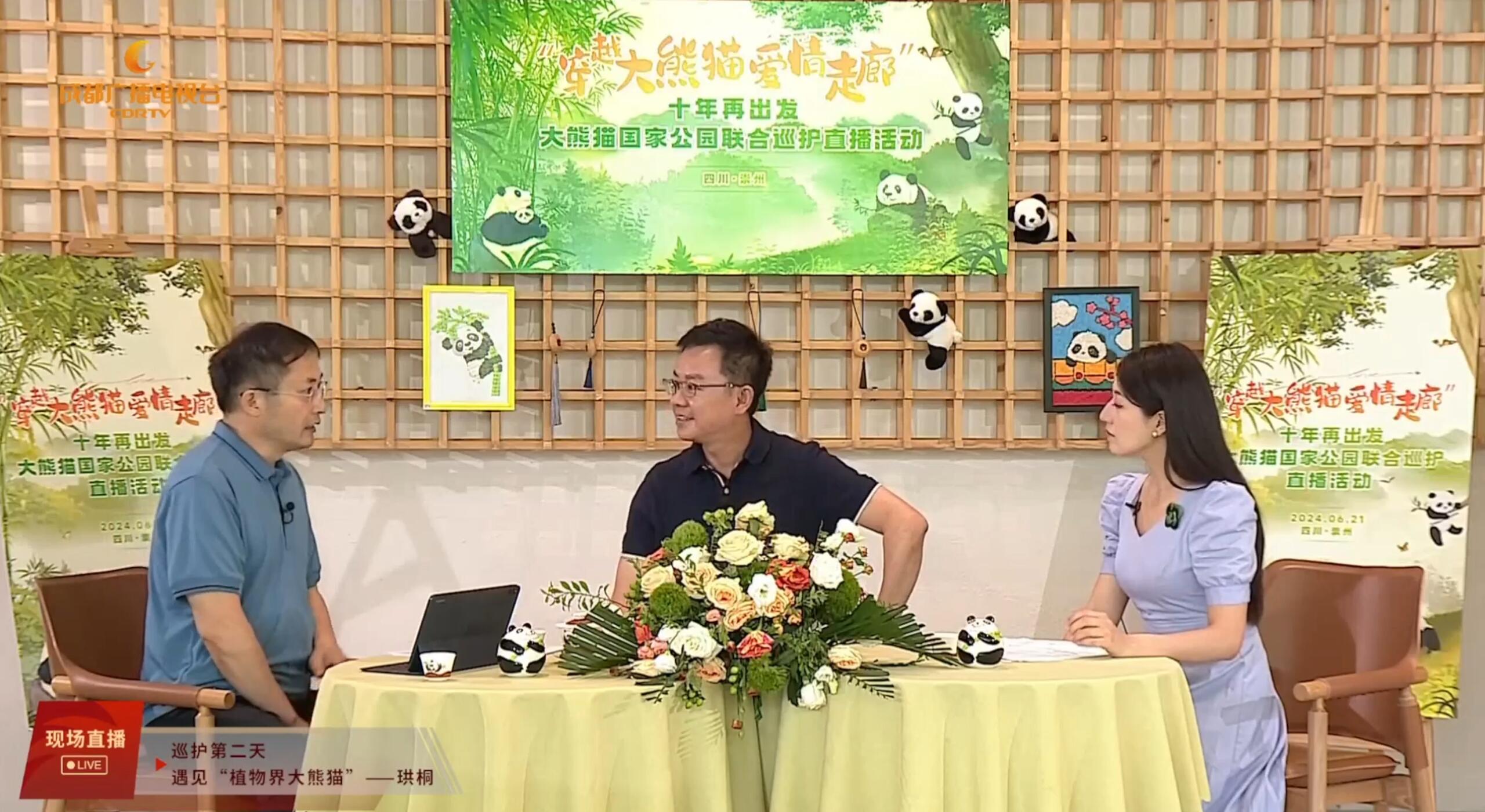 同时,在竹艺公园的演播室现场,来自成都市植物园的专家李方文,也为大家科普了珙桐的相关知识,以及大熊猫国家公园崇州片区里珍稀动植物和谐共生的得天独厚的生态条件。