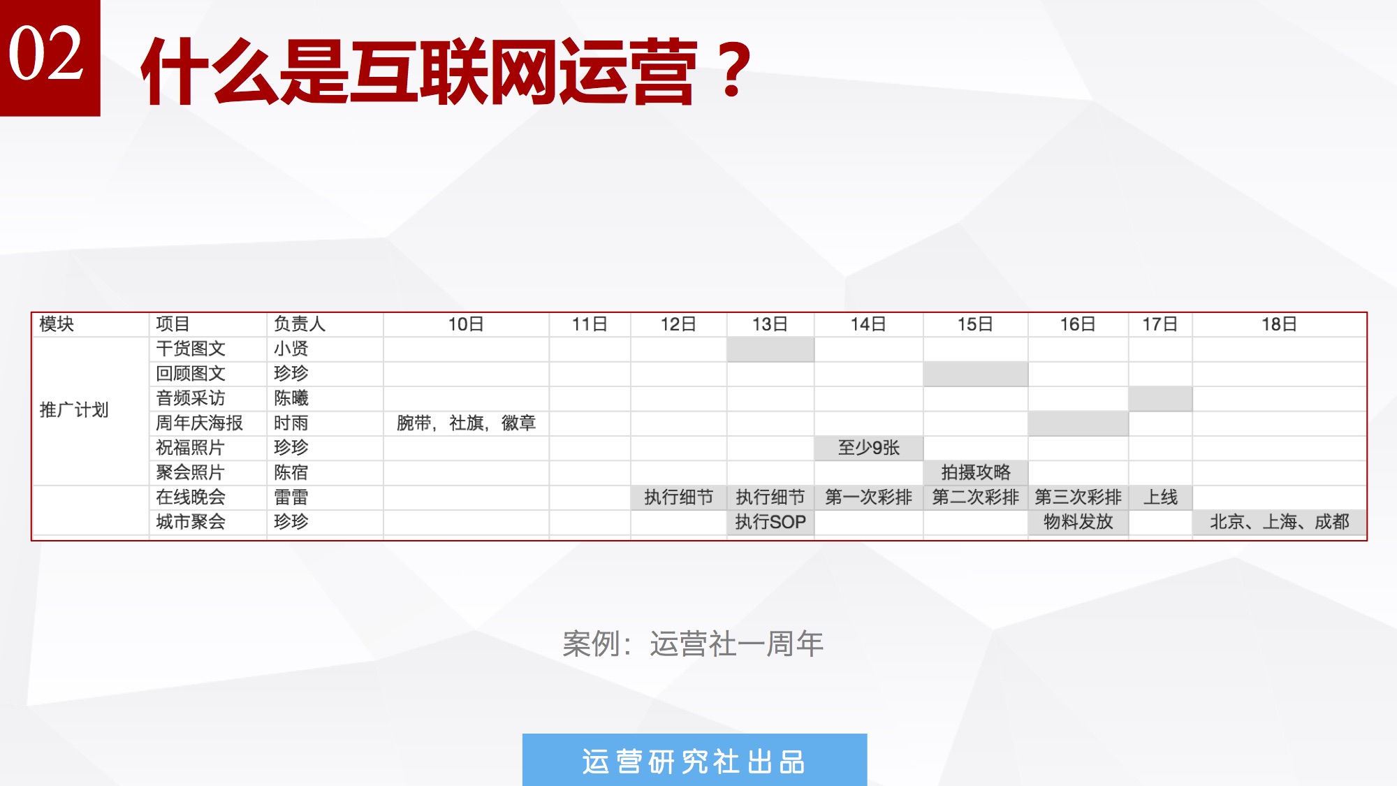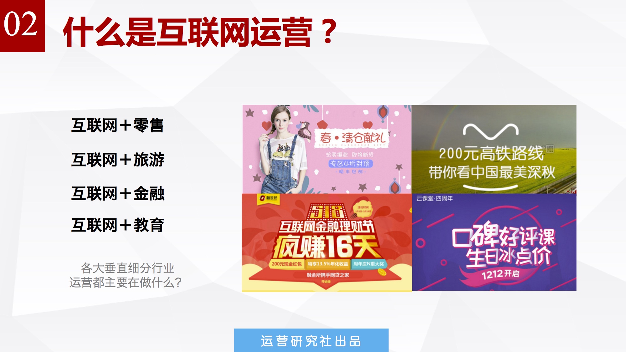 下面结合运营研究社的一些小案例跟大家去深入的聊聊行内人对互联网运营的一个了解和定义。