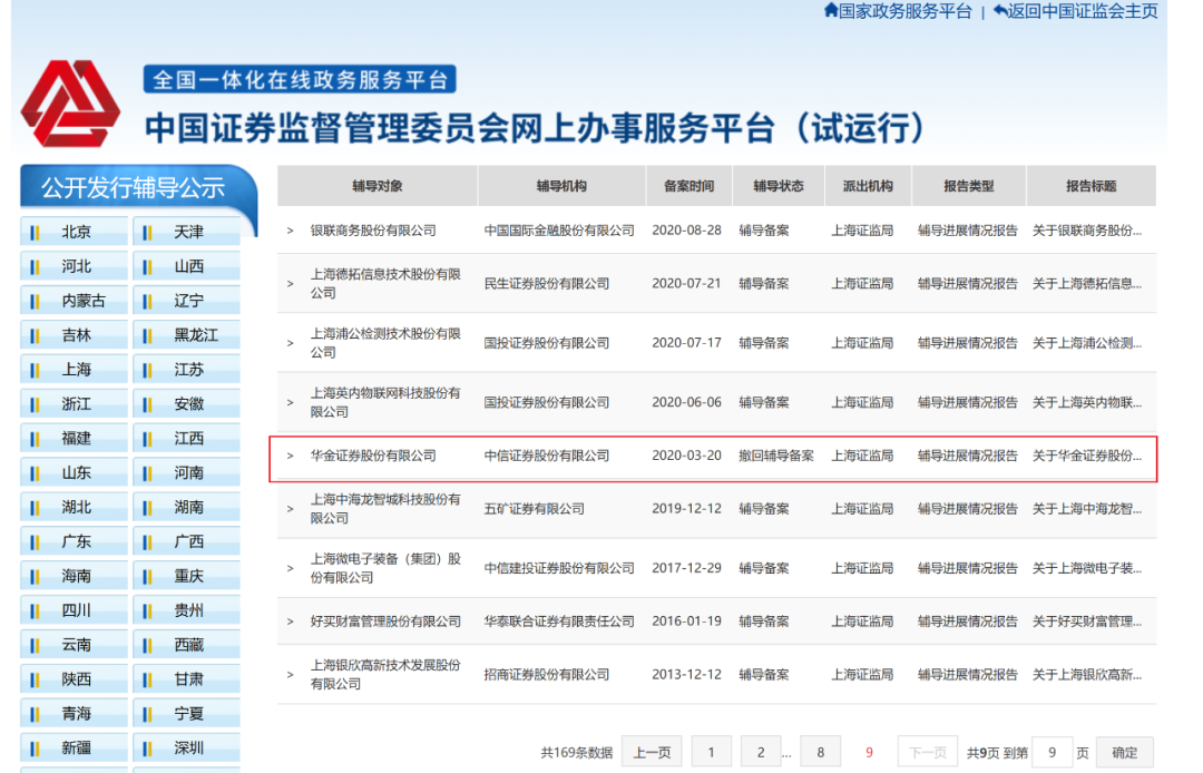 2020年3月,中信证券提交了《关于华金证券首次公开发行股票并上市的辅导备案情况报告》,华金证券开启上市辅导阶段。