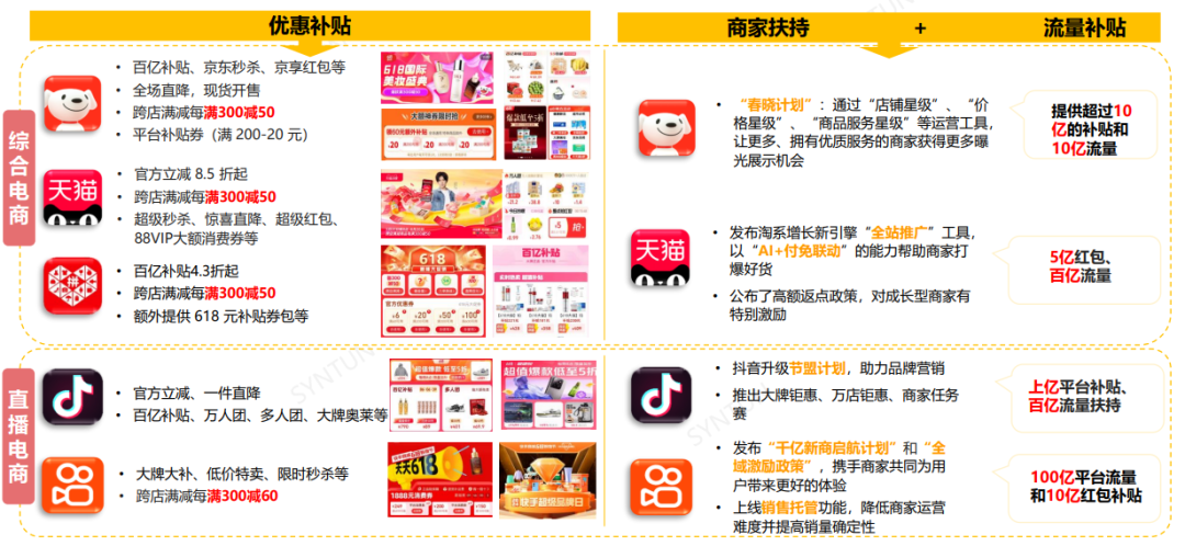 今年618被外界贴上了“最简单”也“最卷”的标签,各大平台不仅简化了规则、取消预售机制,还加码优惠策略,如推出百亿补贴、超级红包等,还分别针对商家推出了扶持政策。