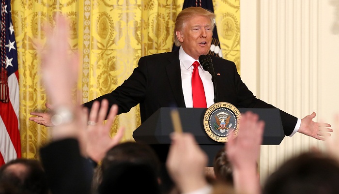 特朗普指责媒体“腐败”、“不诚实”,甚至称媒体是“美国人民的敌人”、在新闻发布会上拒绝接受CNN的提问,因为认为它是“假新闻”。