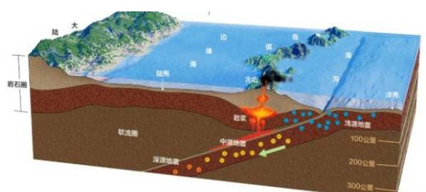 第二,太平洋板块在俯冲到欧亚板块下方时,把日本块体连带着拽到地幔里,从而造成日本沉没,理论上说,似乎存在这种可能性,这也许是《日本沉没》电影的一个引子。但在一般情况下,硅镁质的大洋板块和硅铝质的大陆板块相遇挤压时,总是大洋板块插入大陆板块下面,不会把大陆块体带下去。未来50年、100年,甚至更长期的时间段来看,日本沉没的概率都是极小的。