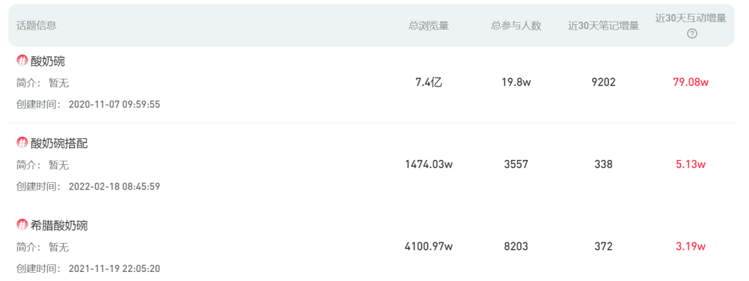 小红书平台上,关于“酸奶碗”话题的总浏览量高达7.4亿,“希腊酸奶碗”和“酸奶碗搭配”的总浏览量也均过千万。