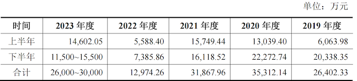 2023年下半年,开诚生态订单签订金额预计为1.15亿元-1.55亿元,订单有所放缓,低于2020年的2.23亿元和2021年的1.61亿元。