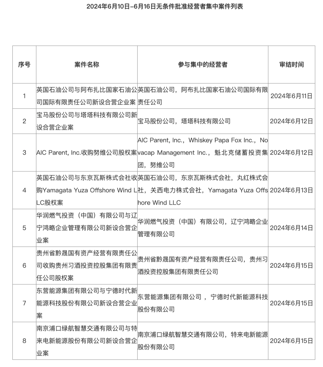 6月25日,市场监管总局反垄断执法一司网站发布2024年6月10日-6月16日无条件批准经营者集中案件列表。其中,市场监管总局无条件批准贵州省黔晟国有资产经营有限责任公司收购贵州习酒投资控股集团有限责任公司股权案。