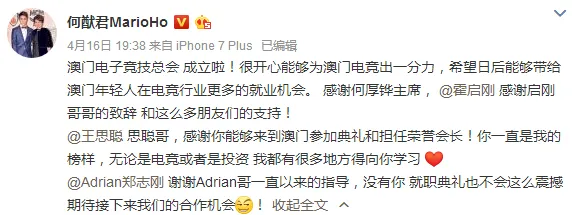 对于全世界而言,电竞都是一个非常年轻的行业。而在中国,人们对于电竞的认知还要更加落后一点:说到电竞行业,“何猷君+电竞”仍让人非常容易联想到此前的“王思聪+电竞”,更何况,两人同为澳门电子竞技总会的(荣誉)会长。