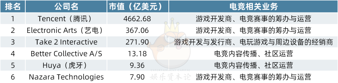 图2 全球市值最大的电竞股一览,数据来源:CompaniesMarketcap.com,截止至2024年6月20日。