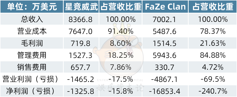 图7 星竞威武与FaZe Clan2022年重点经营数据对比,数据来源:招股书、公司财报