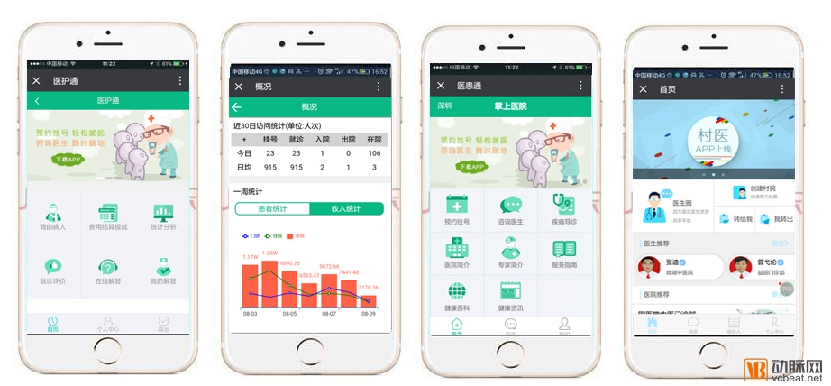 此外,为了满足医院和基层小微机构的移动化工作需求,云杏还开发了医患通,医护通,智营通这3款移动APP产品。