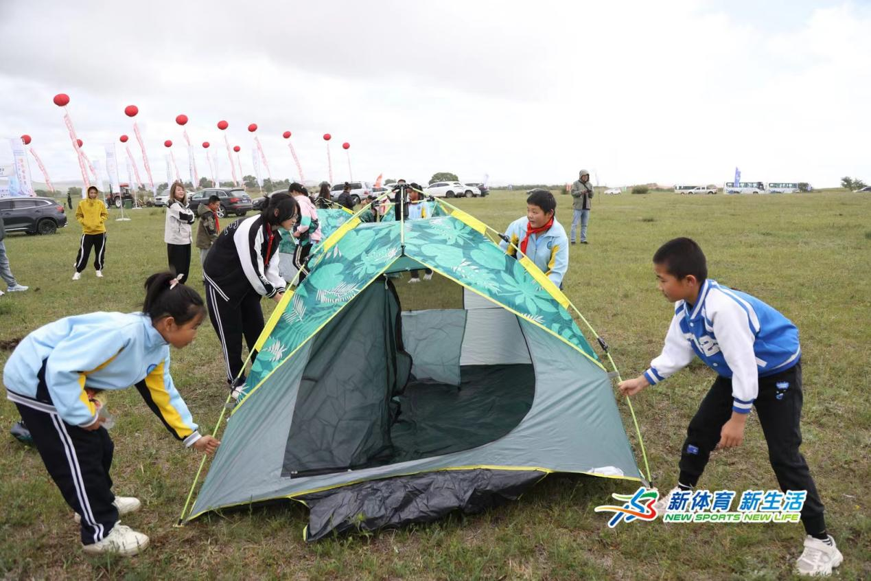上午时分,木兰围场微风习习,草原亲子研学活动准时拉开帷幕。二百余组家庭齐聚沙洲野泉度假区,共同参与了这场特殊的研学活动。在专业教练的带领下,家长和孩子们一同学习了基本的露营技巧和户外生存知识,许多孩子完成了人生第一次帐篷搭建,牧场小学四年级的同学王鹏博向我们讲述了他在帐篷搭建过程中遇到的困难,以及在同学和教练的帮助下成功插入地钉,完成搭建的过程。