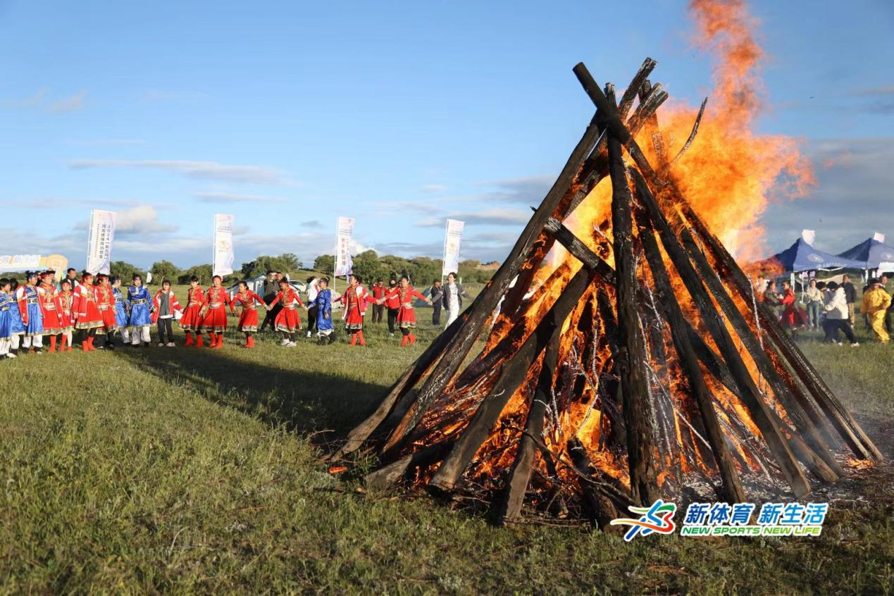 活动接近尾声之际,比赛选手、亲子研学家庭、现场观众和游客齐聚主会场中央,两道箭矢划越天空,点燃篝火,伴随着欢快的音乐,人们拉着手一同起舞,感受浓厚的民族特色,享受难得的欢乐时光。