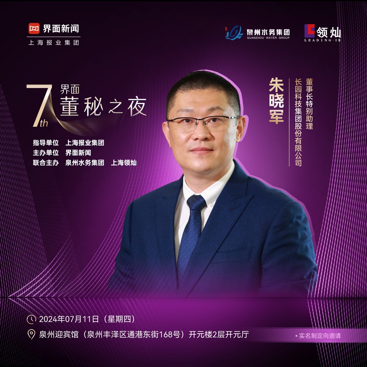 长园科技集团股份有限公司董事长特别助理朱晓军确认出席【2024董秘之夜】。与此同时,晚宴现场,联合主办方泉州水务集团有限公司、上海领灿也将带来精彩纷呈的专业分享、解读。