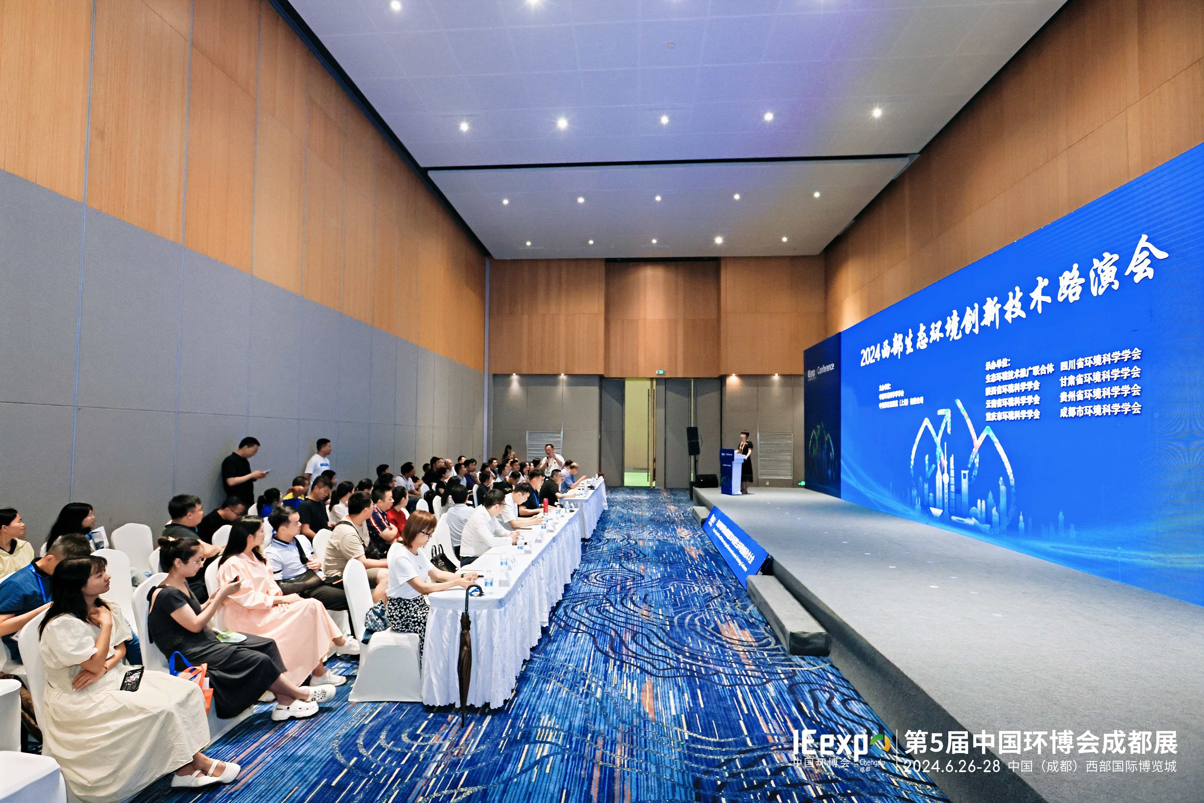 展会首日,由中国环境科学学会领衔主办,中国科协生态环境产学联合体、生态环境领域技术推广联合体、四川省环境科学学会、重庆市环境科学学会、陕西省环境科学学会、甘肃省环境科学学会、云南省环境科学学会、贵州省环境科学学会、成都市环境科学学会、成都环境投资集团有限公司等单位协办的“发展绿色新质生产力 构建绿色发展新格局”——2024生态环境创新技术大会于在中国(成都)西部国际博览城9号厅举办。