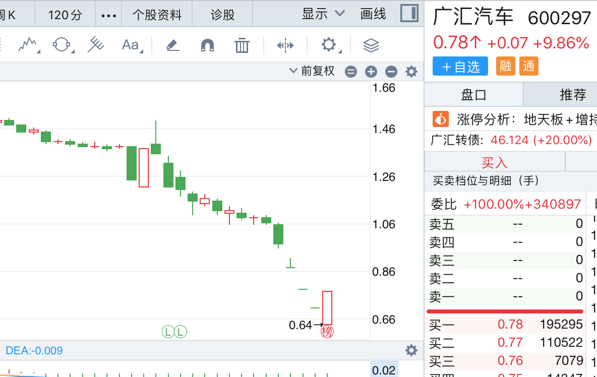 另外目前是广汇汽车在“1元红线”以下的第五个交易日,后续仍然有足够的时间,拉到1元上方。
