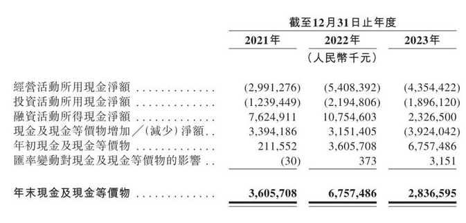 哪吒的流动资金不宽裕。过去三年它的经营现金流都是负的,截至今年4月底,它还有57.5亿元的借款。