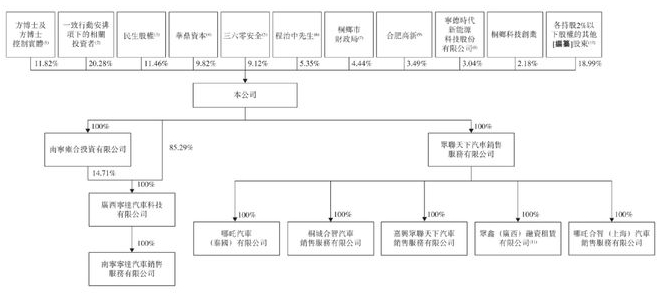 经过后来的多轮融资后,地方政府产业基金的股权被稀释,哪吒的股权结构变得极其分散。下图是哪吒IPO前的股权架构: