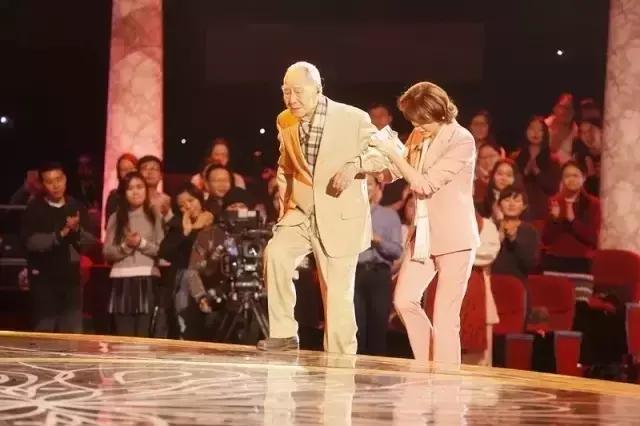在第一期节目里,翻译大师许渊冲大驾现场。董卿和许老握手之后,一直在身旁搀扶着他,口中反复提醒:“不着急,慢慢走,不要急,慢一点。”