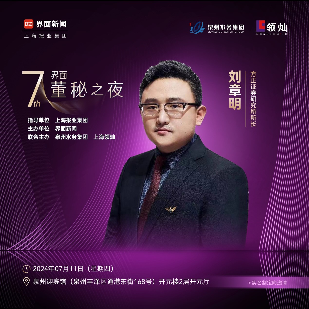 方正证券研究所所长刘章明确认出席【2024董秘之夜】。与此同时,晚宴现场,联合主办方泉州水务集团有限公司、上海领灿也将带来精彩纷呈的专业分享、解读。