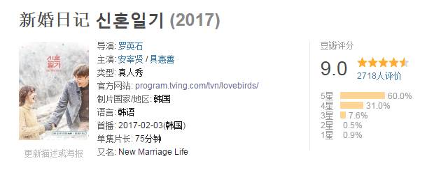 这次的[新婚日记]是罗PD和韩国付费电视台TVN的合作,这些年一直有“TVN出品,必属经典”的说法,这个电视台的靠谱度简直堪比韩国版Netflix。