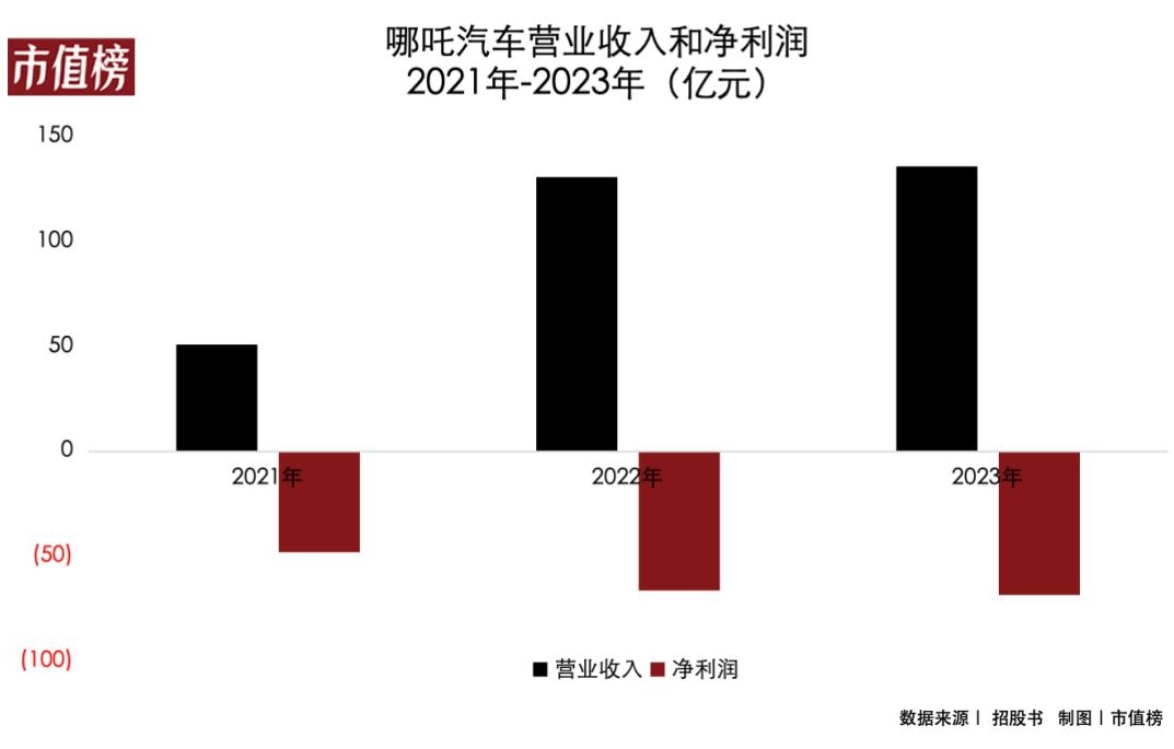 近三年,哪吒汽车的亏损在持续扩大,从2021年净亏48.4亿元,扩大到2023年的68.7亿元。