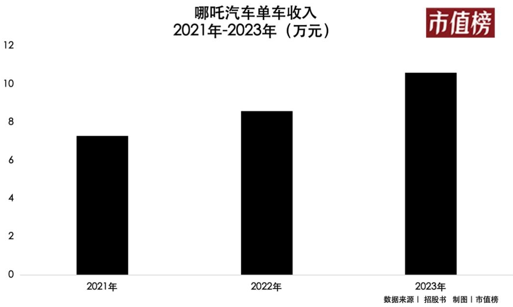 推出高端车型后,哪吒汽车的单车收入从2021年7.3万元上升至2023年的10.6万元,这是2023年销量下降,收入微增的原因。