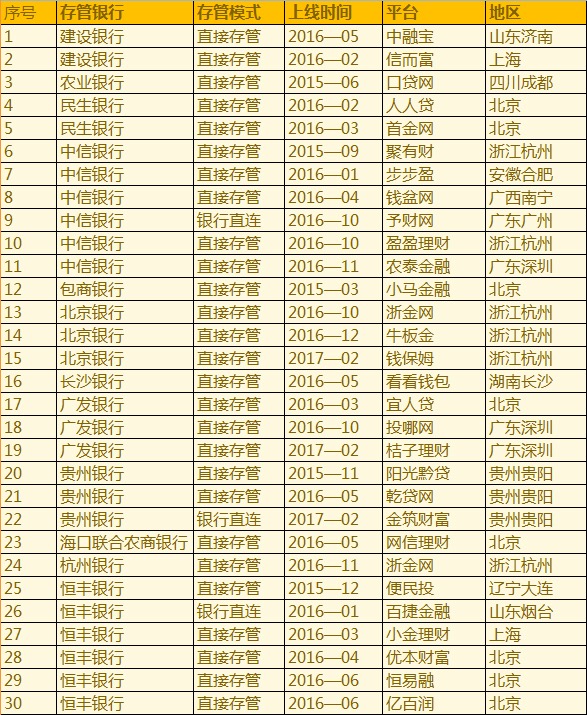 2月23日,由银监会发布的《网络借贷资金存管业务指引》(以下简称《存管指引》)正式亮相,《存管指引》共计五章二十九条,其中明确规定明确由商业银行独立开展资金存管的业务模式,这也意味着,此后不少平台之前采用的“银行+第三方支付”联合存管模式将不再合规。