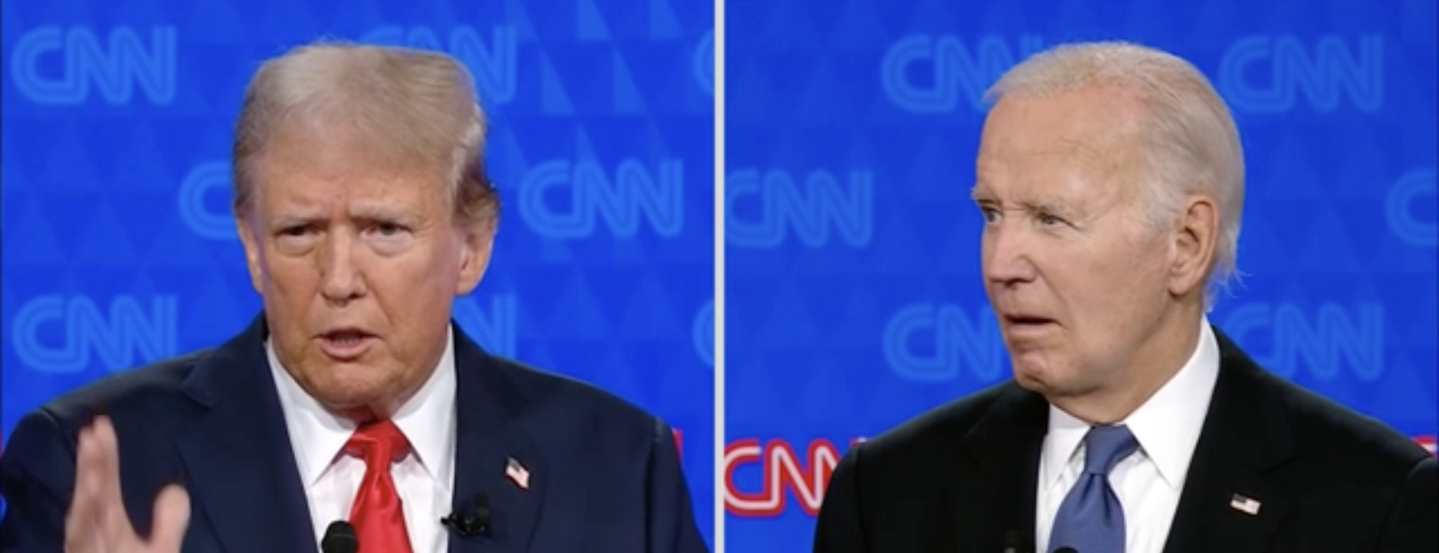 美国东部时间2024年6月27日晚间,拜登与特朗普在亚特兰大的CNN总部演播厅进行首场闭门电视辩论。辩论开始前就充满了火药味,两人没有握手,正如4年前一样。特朗普在一天前自己的社交网络Truth Social上攻击拜登是美国民主的威胁。