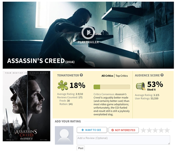 究其原因,与以往游戏改编的电影如出一辙。TheWrap网站称,“剧情混乱太要命,不仅蠢得可笑还复杂到根本没有必要。”而英国《卫报》点评道:“存在就是为了圈游戏粉的钱,他们还不如回去玩游戏。”美国《综艺》杂志则感慨浪费了精良的明星阵容:“迈克尔·法斯宾德就像是表演终极特效效果的,为了秀这部艺术设计过头的半成品电子游戏而让他出场两小时。”
