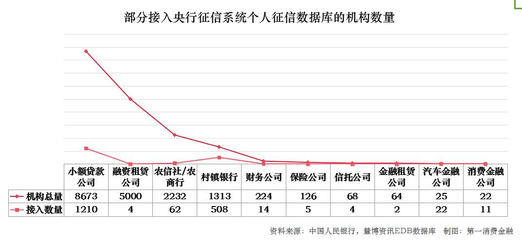 如果单看机构接入数,似乎数量还比较可观。但实际上,接入的机构数占据金融机构总数的比例很小。央行的这种“谨慎”态度,导致金融业各类机构不敢抱有想象空间,不得不重资产运作,独立完成线上线下信审,使得贷款成本高昂,一定程度上抵消了互联网高效率、低成本的优势,而这部分成本最终均摊到借款人和机构自己身上。更为重要的是,央行本来可以通过共享征信数据查询,降低市场信息不对称,在打击老赖和减少信贷欺诈上有所担当,却选择了不作为。