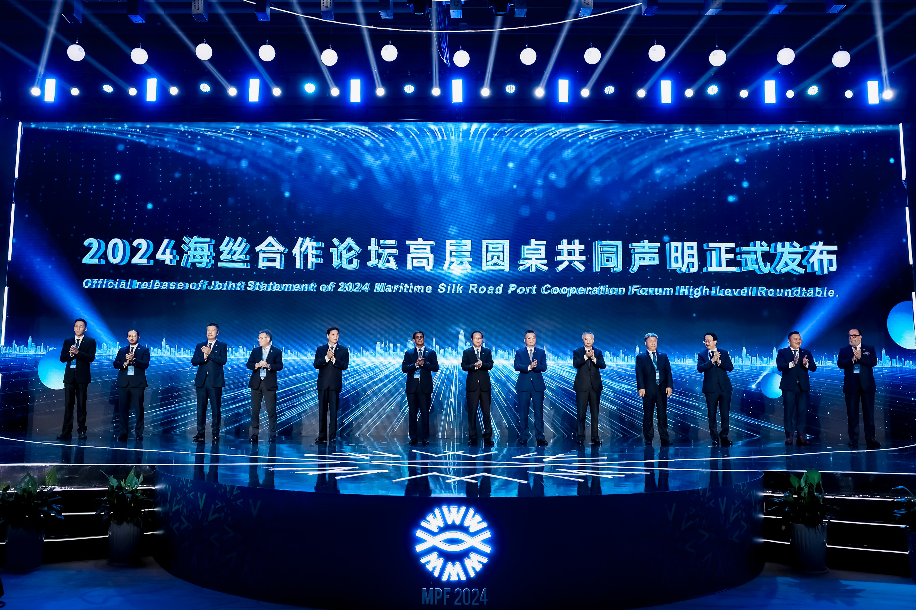 6月27日上午,在2024海丝港口合作论坛开幕式暨主论坛上,《更开放的丝路、更联通的港航、更繁荣的经贸——2024海丝港航高层圆桌会议共同声明》(以下简称《共同声明》)正式对外发布,近40个国家和地区的超1000位嘉宾现场见证了《共同声明》的发布。