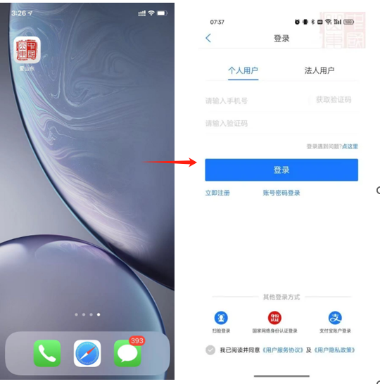 第一步:申领人通过手机打开“爱山东”APP,进入个人用户登录界面,输入个人信息进行登录;