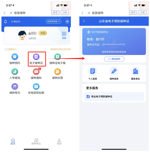 2023年国家疾控局启动电子接种证试点工作,在北京、山东等11个省份开展电子预防接种证建设和应用试点工作,青岛是首批试点城市。现在,青岛市电子接种证已经全面上线啦!