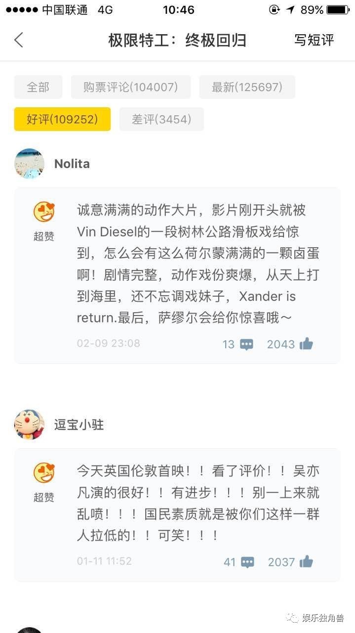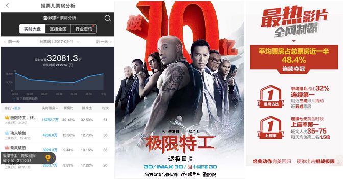 而《极限特工3》票房上的优异表现,再一次验证了中国在线票务平台的宣发能力,围绕互联网大数据的营销能力,给进口片注入了强有力的兴奋剂。