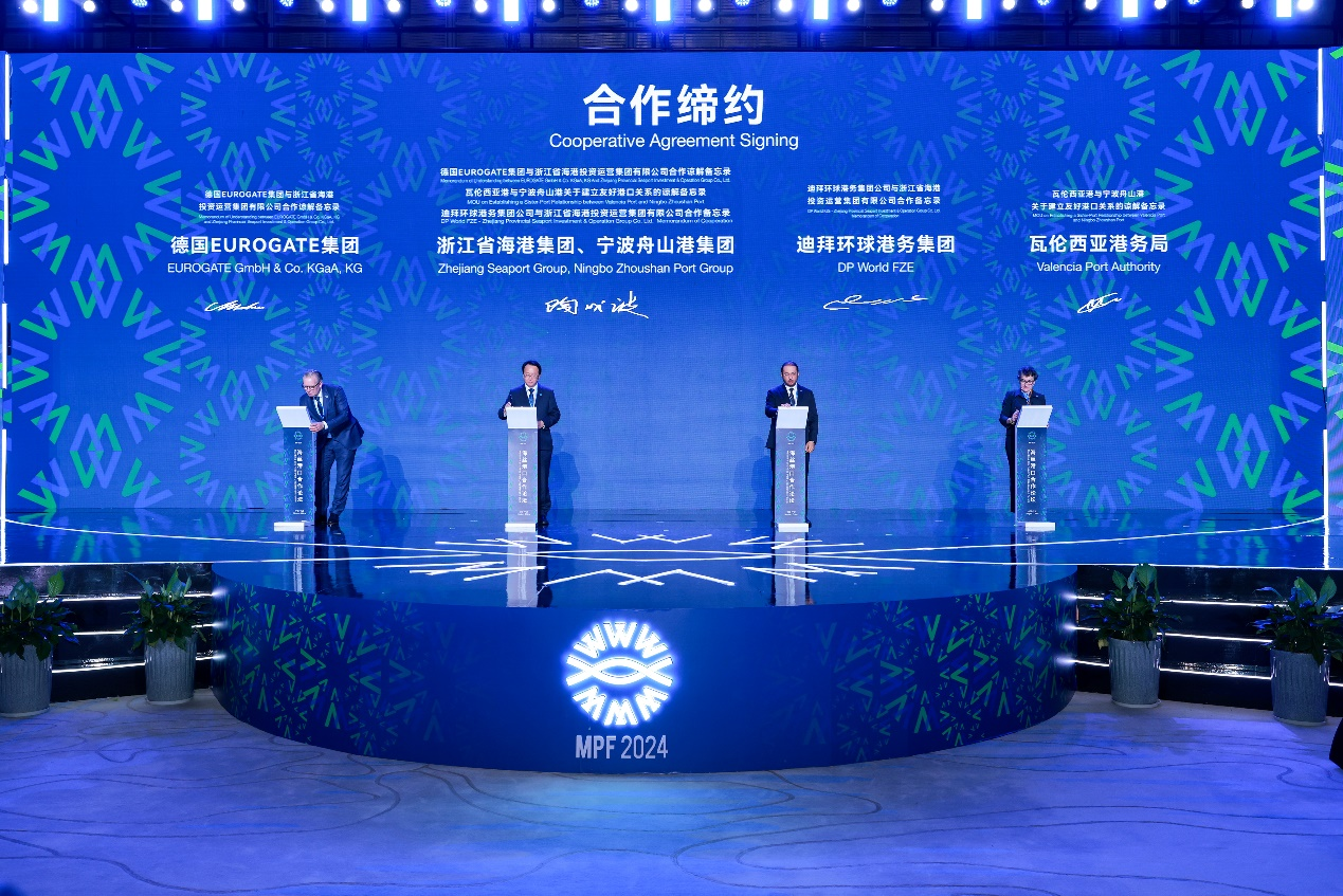 这些成果是具体、可触摸的。浙江省海港集团、宁波舟山港集团与迪拜环球港务集团、德国欧门集团、西班牙瓦伦西亚港务局签署一对一合作协议。