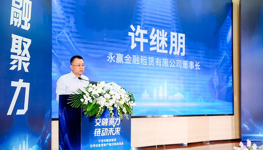 永赢金融租赁董事长许继朋在致辞中指出,作为在甬租赁公司的代表,永赢金融租赁将推出“专项资金”+“减息券”+“赠送设备保险”三大专项保障,在专业化、数字化、平台化等方面不断提高金融服务水平,助推企业设备更新。