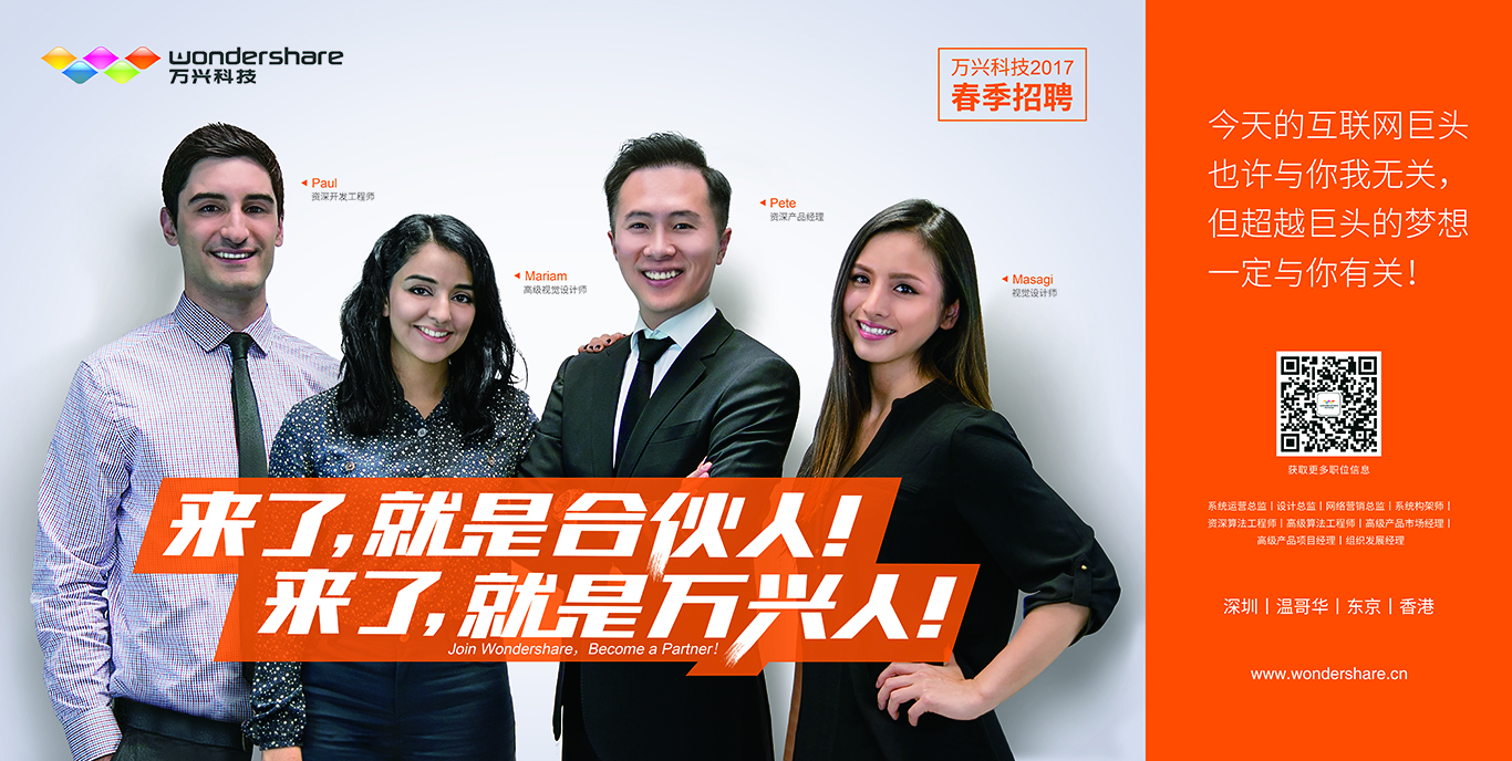 最近一张关于招聘全球合伙人的海报在朋友圈流行,醒目的“合伙人”三字让这张海报的关注度增加不少。这张海报来自于万兴科技,一家以海外市场为主要目标的软件公司。
