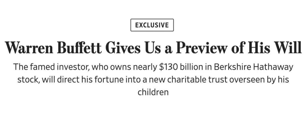当地时间6月28日,巴菲特在《华尔街日报》专访中罕见地透露了最新的遗产安排。