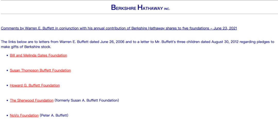 2天前,伯克希尔哈撒韦公司官网曾发布了巴菲特关于捐赠伯克希尔股票承诺的信函。5封信中涉及的捐款额达到1205万股伯克希尔B类股票(约49.4亿美元)。信中向其子女霍华德、苏珊和彼得领导的三个慈善机构各捐赠了约35万股股票,而最新的声明中将这3个慈善机构的捐赠额提高了近1倍。捐赠给比尔和梅琳达·盖茨基金会以及苏珊·汤普森·巴菲特基金会的额度与最新的声明相差不大。