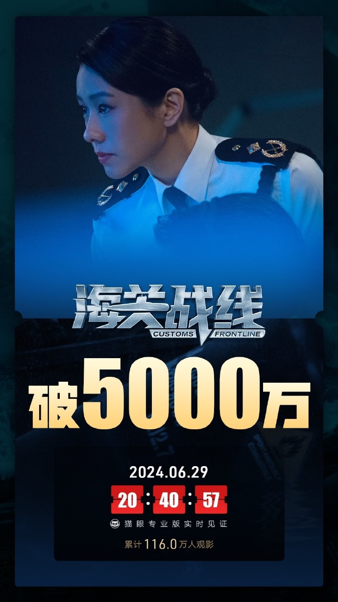 据猫眼专业版数据,电影《海关战线》上映2天,总票房破5000万。
