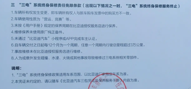 比亚迪为了保值率,最近也修改了其三电终生质保政策。过去比亚迪车主想要终身质保,比亚迪官方出台了8个限制条件,其中一条“只有首任车主才能享受终身质保”。这极大影响了比亚迪二手车的保值率。现在这个限制松动了。比亚迪官方表示,只要是购买官方认证二手车的车主,也可以享受终身质保政策。