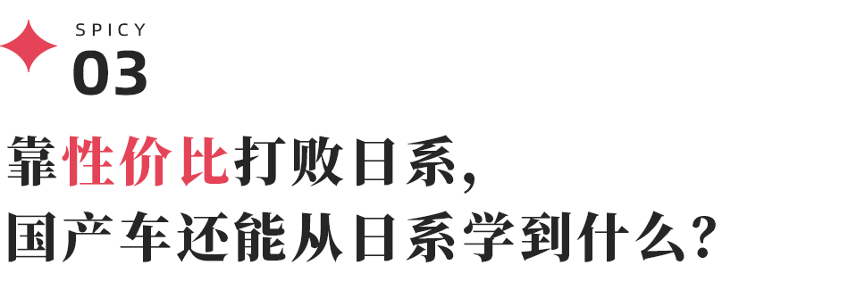 量大管饱,技术先进,造型时尚,这是自主车企在SUV领域抢占日系车市场的三大法宝。消费者没有理由拿着精装房的钱,去买一个毛坯房。日系车的优势只剩下了传统的可靠性耐用性。中国车企通过全面学习其生产管理方式,正在逐步改善耐用性问题。